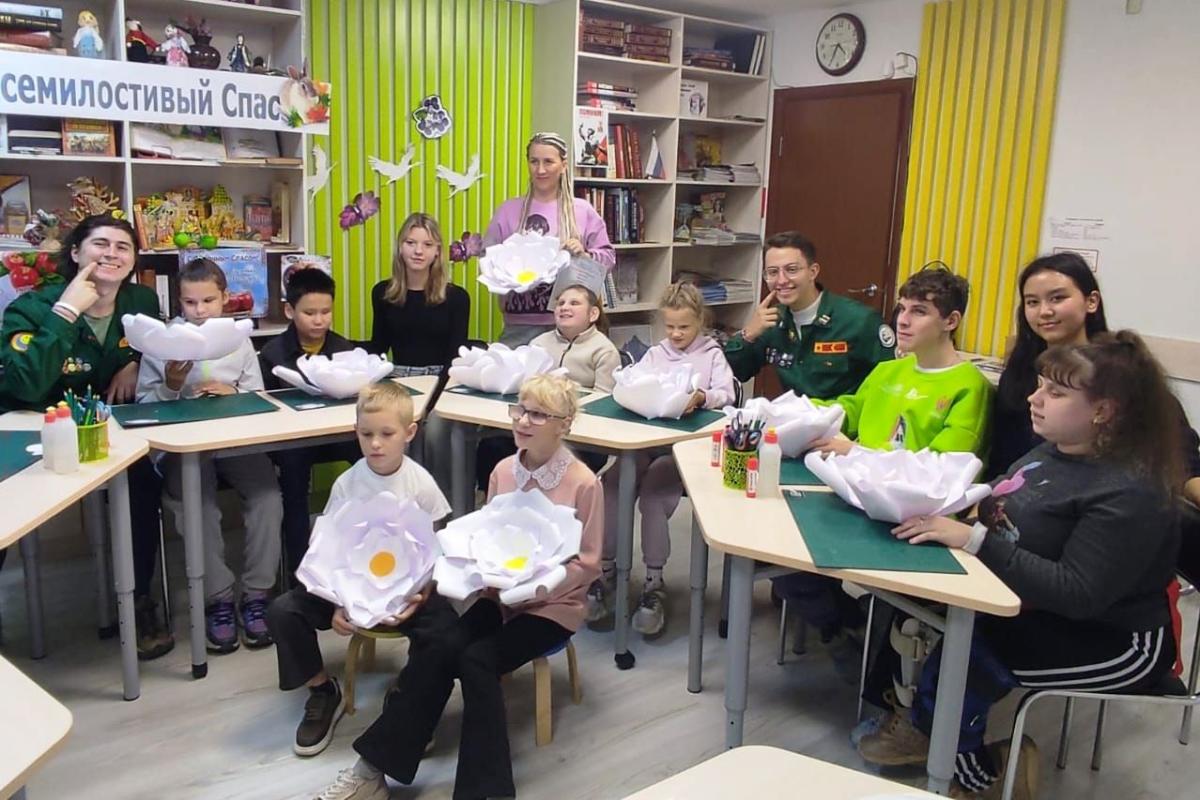 Очередная встреча была посвящена искусству оригами, и ребята с ограниченными возможностями здоровья создавали объемные цветы. При активной поддержке волонтеров из студенческого педагогического отряда «Улыбка», участники осваивали техники складывания бумаги. Формы и тактильные ощущения сделали процесс полезным для развития мелкой моторики и пространственного мышления.