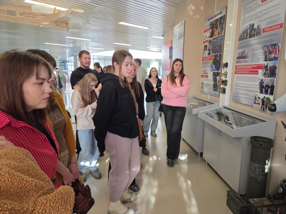 Студенты-практиканты специальной библиотеки приняли участие в программе, которая включала экскурсию в «Музей СВО: Герои и подвиги Южного Урала». Музей познакомил участников с героическими страницами истории земляков, экскурсовод рассказала о подвигах участников СВО и о важных исторических артефактах.