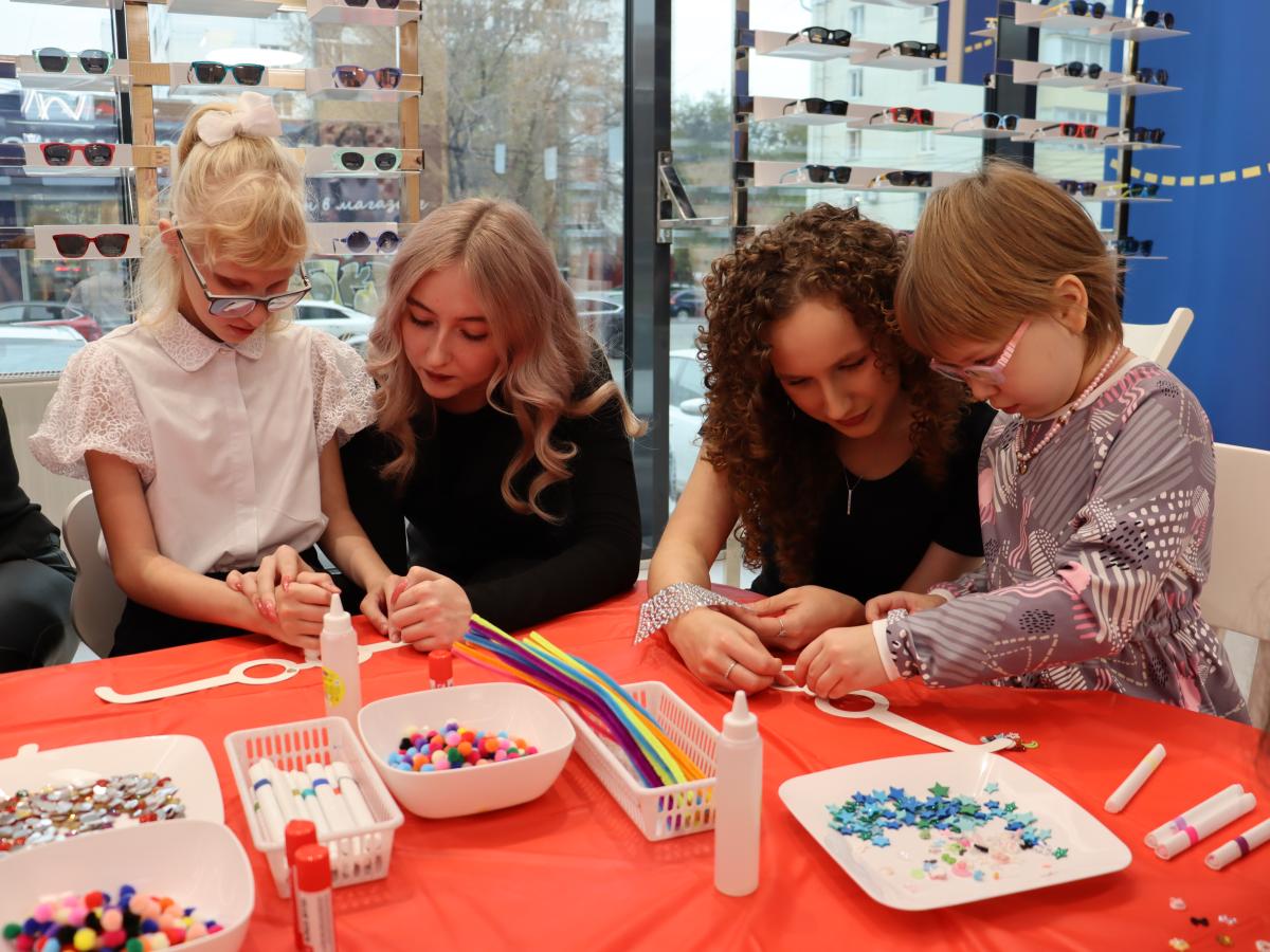 Программа мероприятия также включала в себя творческо-познавательную часть. Дети приняли участие в мастер-классе «Самые модные очки», где своими руками создавали оправы, украшая их различными декоративными элементами.